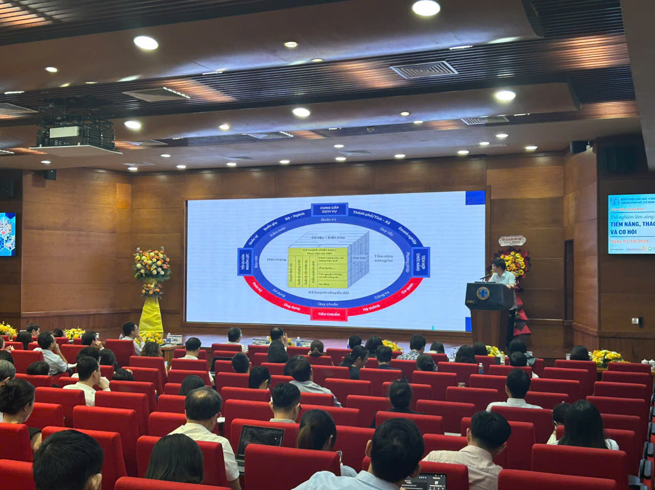 Trong tham luận tại hội thảo, Thiếu tá Đào Đức Triệu, Tổng Thư ký Hiệp hội Dữ liệu Quốc gia, nhấn mạnh rằng Khung Kiến trúc Dữ liệu Quốc gia không chỉ là một công cụ kỹ thuật, mà còn là “bản thiết kế” cho cách thức chúng ta nhìn nhận và quản trị dữ liệu y tế. Ông chỉ rõ ba trọng tâm: an ninh dữ liệu trong nghiên cứu lâm sàng, bảo vệ dữ liệu cá nhân theo pháp luật, và triển khai thực tiễn trong hệ thống y tế. Đây là những yếu tố then chốt khi y tế đang tiến dần tới mô hình y học chính xác, cá thể hóa, nơi mỗi dữ liệu bệnh nhân có giá trị không kém một tài sản quốc gia.